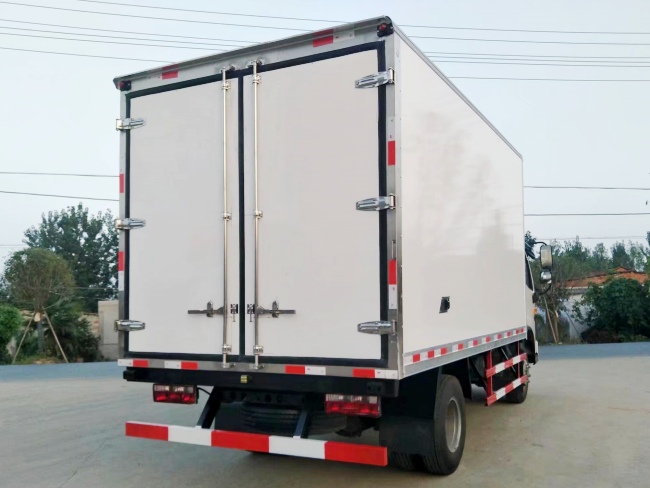 我公司《晶龍工藝》技術,采用1200噸液壓加熱固化設備一體成型生產線制造,廂體保溫技術達到國家A級標準。1、全密封樹脂膠粘連聚氨酯發泡板高壓加熱固化而成,廂板厚度為8cm;2、廂板內外面料為2.5mm厚新款玻璃鋼;3、粘連輔料為玻璃纖維絲布;4、板塊結構聚氨酯發泡保溫材料;5、全密封樹脂膠粘連;6、預埋實木廂體加固;7、廂體框架為防銹處理槽鋼支撐;8、鋁合金包邊/不銹鋼包角;9、廂體內部加裝LED照明燈;10、廂體加裝LED示寬燈;11、3.5米廂體以上加裝LED邊燈;12、廂體后門框為不銹鋼制造及不銹鋼鉸鏈(俗稱:不銹鋼合頁);13、加厚不銹鋼鎖件;14、后門加裝防撞膠塊;15、采用三元乙丙橡膠密封條;16、3M反光膠板。