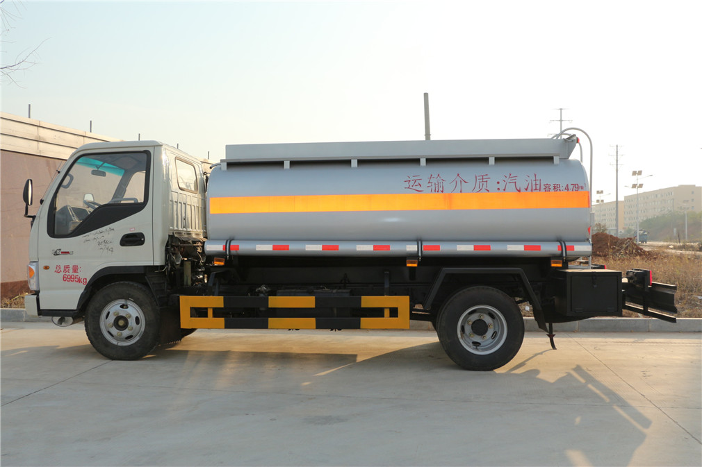 其他 1、該車適用于危險品運輸,運輸介質:柴油,汽油,煤油,介質密度分別為:0.83噸/立方米, 0.73噸/立方米, 0.80噸/立方米; 類項號:3,罐體有效容積:4.2立方米。罐體外形尺寸(長×長軸×短軸)(mm):①3100(實際長4000,其中罐體前部900mm長用于安裝加油機用)×1750×1150;②(選裝加油機下置時)3800×1600×1030。2、防護材料:Q235A碳鋼,連接方式:左右側面及后下部防護均采用焊接連接,后部防護斷面尺寸(mm):100×50,后部防護離地高度(mm):390。