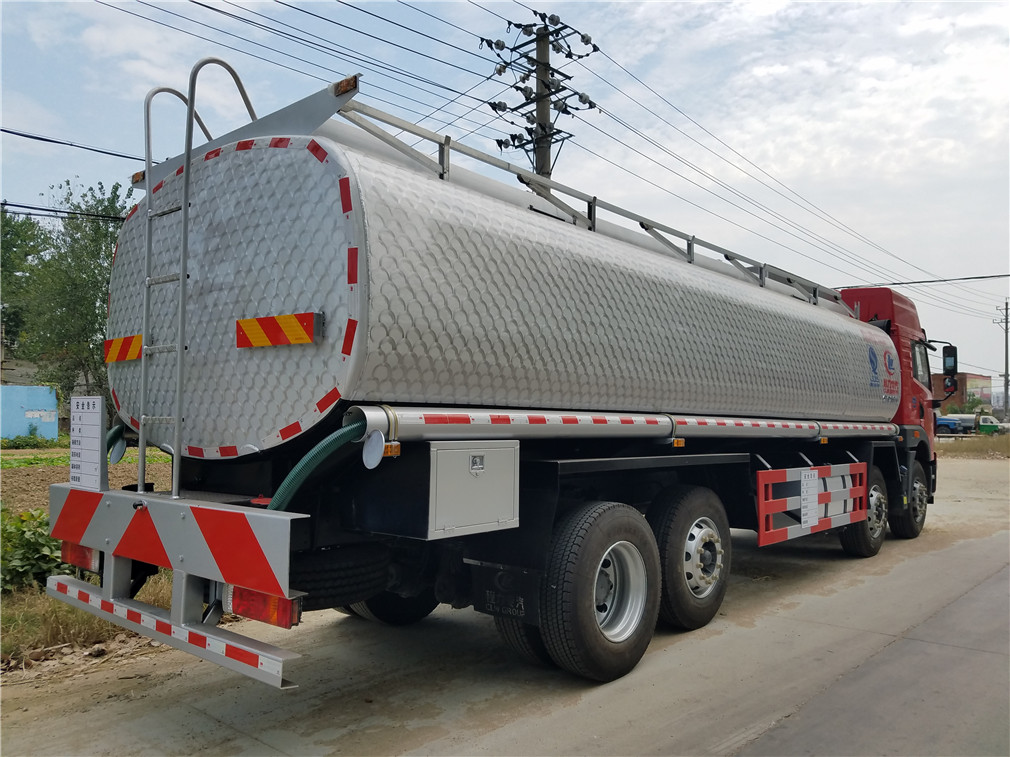 其他 該車適用于危險品運輸,運輸介質:柴油,汽油,煤油,介質密度分別為:0.83噸/立方米, 0.75噸/立方米, 0.80噸/立方米,類項號:3;罐體有效容積:22.7立方米, 罐體外形尺寸(長×長軸×短軸)(mm)為:8400×2450×1560。防護材料:Q235A碳鋼,連接方式:左右側面及后部防護均采用焊接連接,后部防護斷面尺(mm):120×50, 后部防護離地高度(mm):520。僅采用底盤子午線輪胎和帶ABS的底盤,該車前輪安裝盤式制動器,前置排氣管,裝配限速裝置,限速80km/h。安裝帶有衛星定
