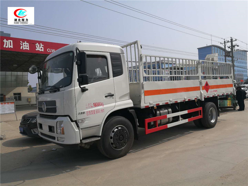 其他 隨底盤選裝駕駛室臥鋪側窗裝飾板、前圍擾流罩、前霧燈、駕駛室頂部裝飾燈。防護裝置:材料Q235、螺栓連接;后下部防護裝置:斷面尺寸100×50mm或120×60mm,離地高度540mm。安裝具有衛星定位功能的行駛記錄儀。裝有ABS,型號:3631010-C2000,4460046440;生產廠家:東科克諾爾商用車制動系統(十堰)有限公司,威伯科汽車控制系統(中國)有限公司。排氣管前置,裝盤式制動器,裝限速裝置,限速80km/h。該車運輸具有獨立容器(瓶)包裝的易燃氣體(類項號:2.1)和非易燃無毒氣體(類項號:2.2);危險貨物運輸車輛的類型:FL型。運輸易燃氣體時,箱體是“易燃氣體”牌,運輸非易燃無毒氣體時, 箱體是“不燃氣體”牌。選裝貨箱箱板、后門結構。