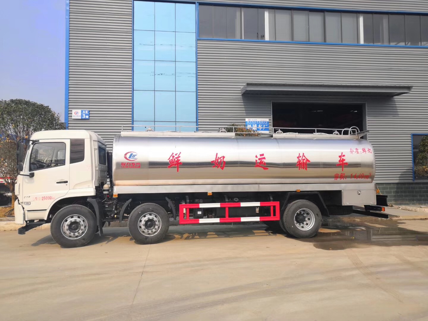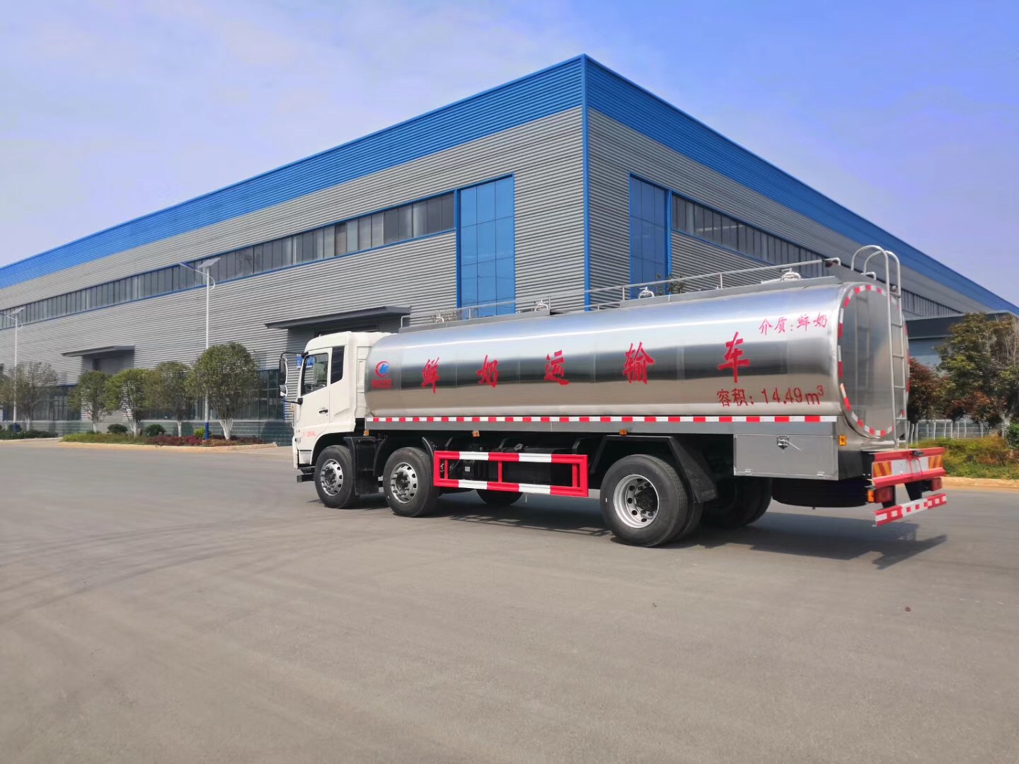 • 鮮奶運輸車又稱牛奶運輸車、奶罐車、液態食品運輸車,罐體用食品級不銹鋼板制作,罐體外部需作保溫層防止鮮奶變質,罐體內部要求光潔、無銳角,一般需要在每個奶艙內加上CIP(清洗裝置)。