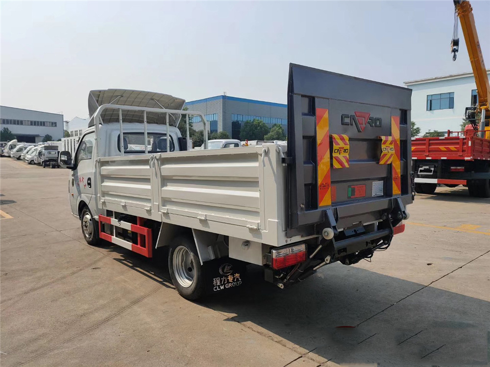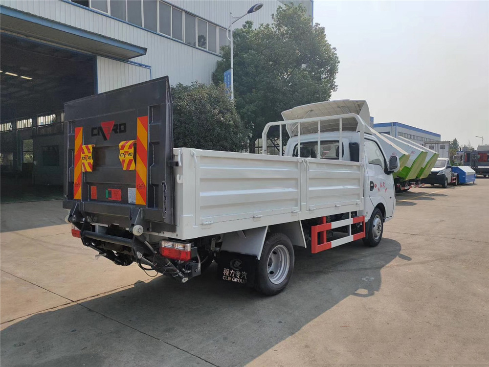 國六·東風途逸桶裝垃圾運輸車,軸距3000mm,火車頭式駕駛室,內飾配置高端,柳州五菱112馬力汽油發動機,5檔變速箱,175R14LT真空輪胎(后雙胎),方向助力,原裝空調,中控,遙控鑰匙。凱卓立液壓尾板,提升能力500KG。滿載可裝卸15桶240L塑料垃圾桶。
